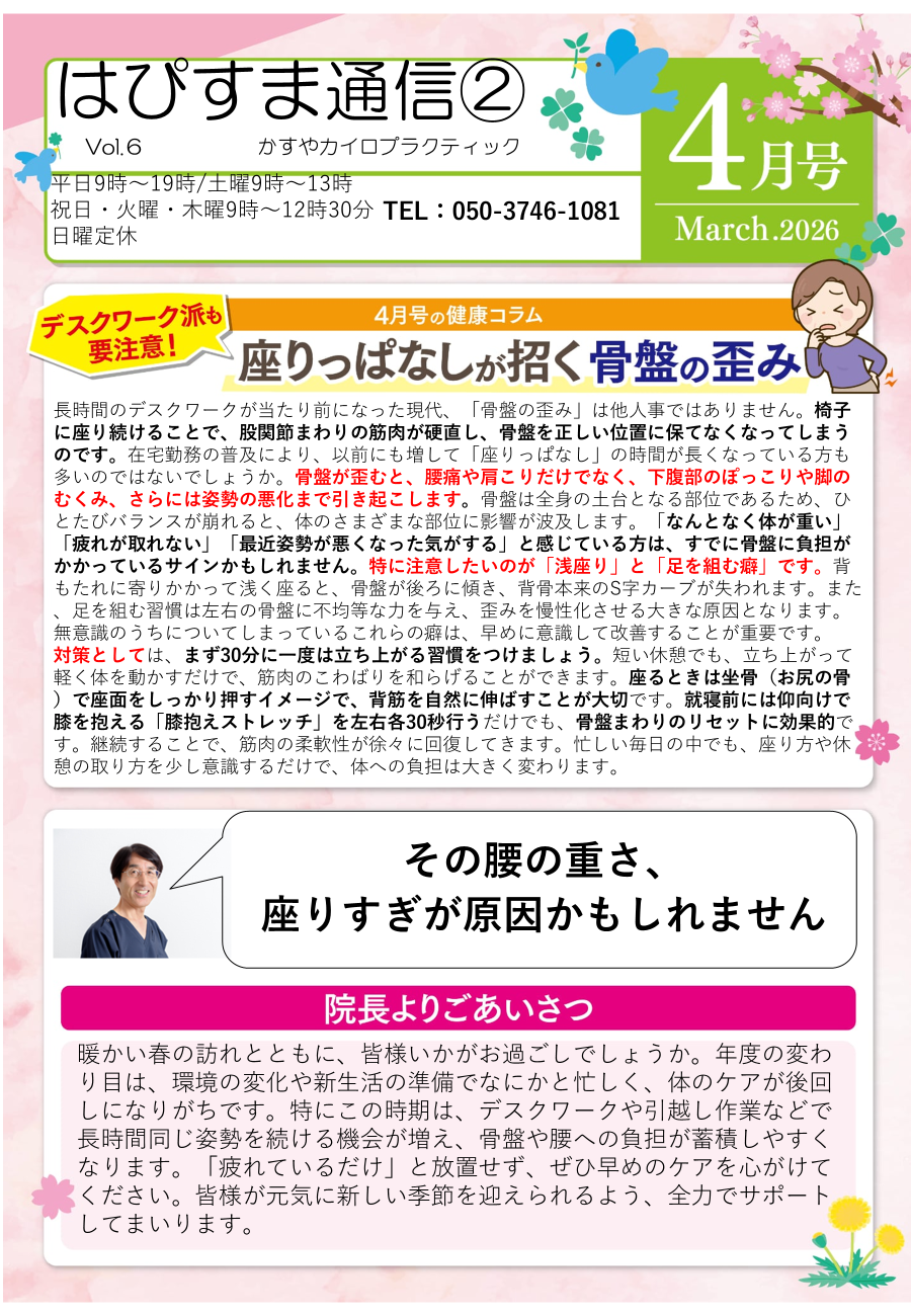 ハッピーすまいる通信② VOL.6 4月号(座りっぱなしが招く骨盤のゆがみ)